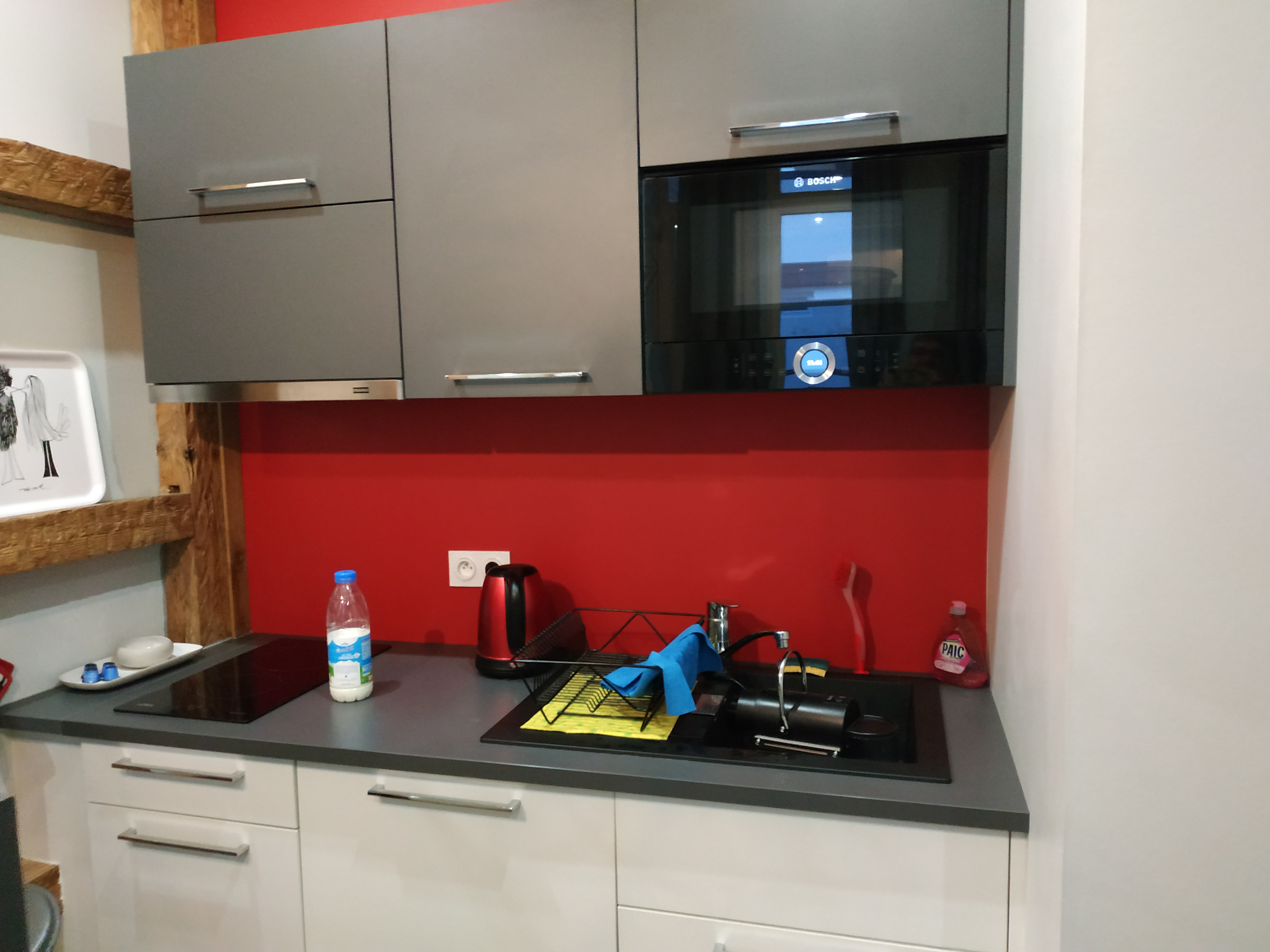 C'est un logement super bien situé, et assemblé avec amour, même si peut-être un peu juste en termes d'espace, les choses rentrent régulièrement et la salle de bain est un peu étroite. Il y a aussi une tache de moisissure noire qui devrait être réparée.